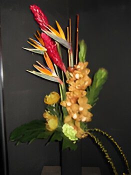 A Stunning Combination Of Cymbidium Orchid & Exotic Tropical Flowers Arranged In A Classic Black Matte Vase~Send This To Make A Statement!